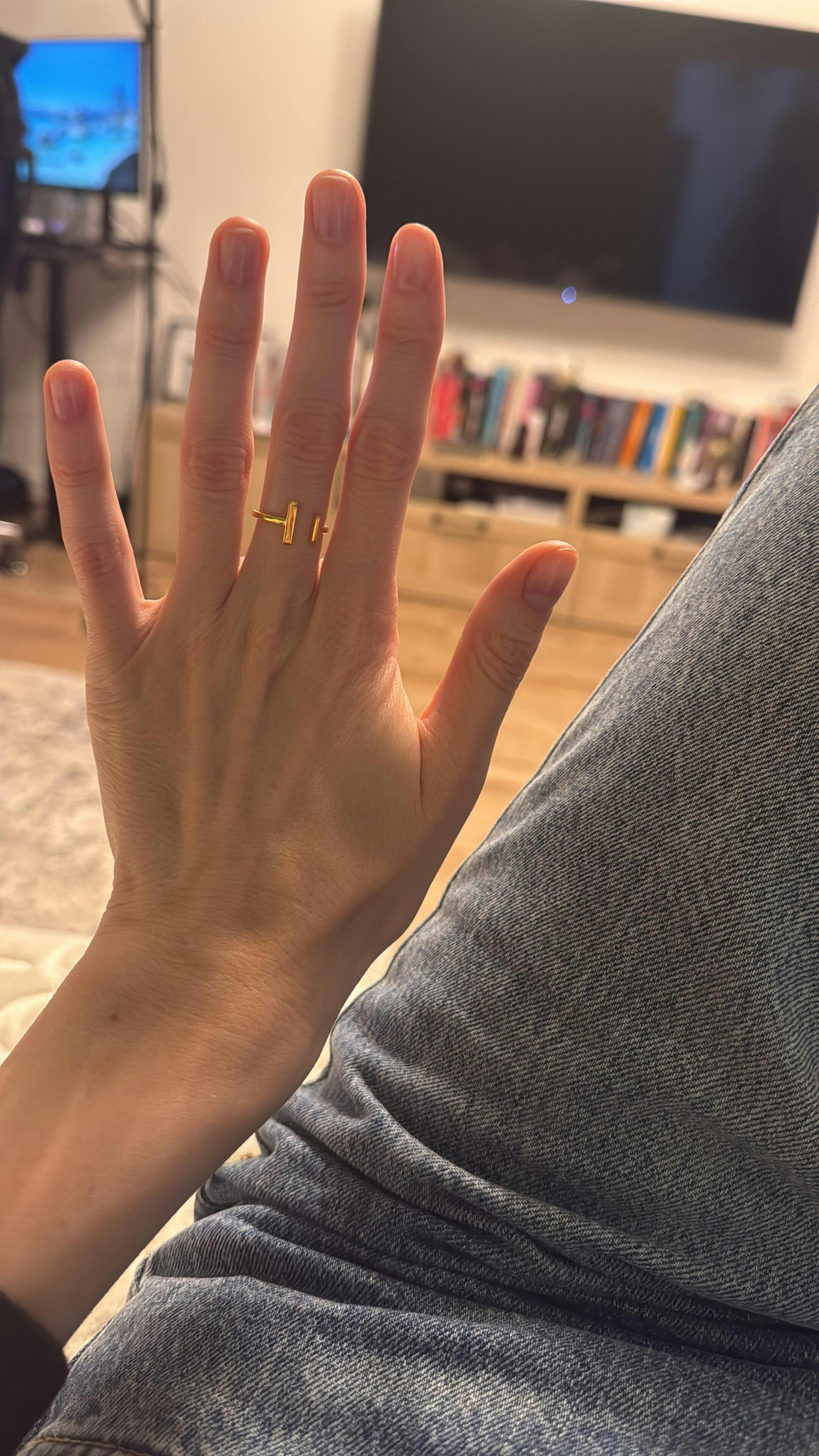 Mi-a placut atat de mult incat am mai luat unul. Primul inel luat, este putin cam mare, dar mi-a placut atat de mult incat mi-am mai luat unul. Mie mi se par absolut superbe. Intr-adevar daca nu tii cont de recomandarile lor aurul se duce de pe inel. Voi incerca sa am mai multa grija cu cel de al doilea.
