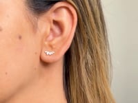 Climber este perechea de cercei perfectă pentru cei care apreciază eleganța subtilă și rafinamentul clasic. Realizați din aur galben de 14k, acești cercei emană un farmec atemporal, completat de pietre fațetate din zirconiu, tăiate în formă de marquise, care imită strălucirea diamantelor.