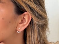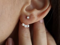 Jacket este un accesoriu ce îmbină eleganța clasică cu modernitatea minimalistă. Acești cercei sunt confecționați din aur galben de 14k, având un design remarcabil ce include un diamant rotund cu tăietură briliant la un capăt și trei perle albe delicate la celălalt capăt. Suprafața aurului este finisată cu precizie, oferind o strălucire subtilă care adaugă rafinament fiecărui outfit.