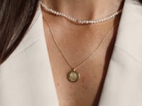 Golden Glamour - Perle Naturale - bijuteria are lungimea de 38 cm, cu posibilitatea de extindere până la 40 cm, iar înălțimea perlelor este de 3 mm. Placajul este realizat din Aur Galben 14K cu grosimea de 2 microni.