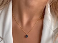 Colier din argint Golden Serene - Topaz Blue London - este o bijuterie din argint placată cu Aur Galben 14K cu un strat generos de 2 microni pentru rezistență sporită la purtare și la contactul cu apa.