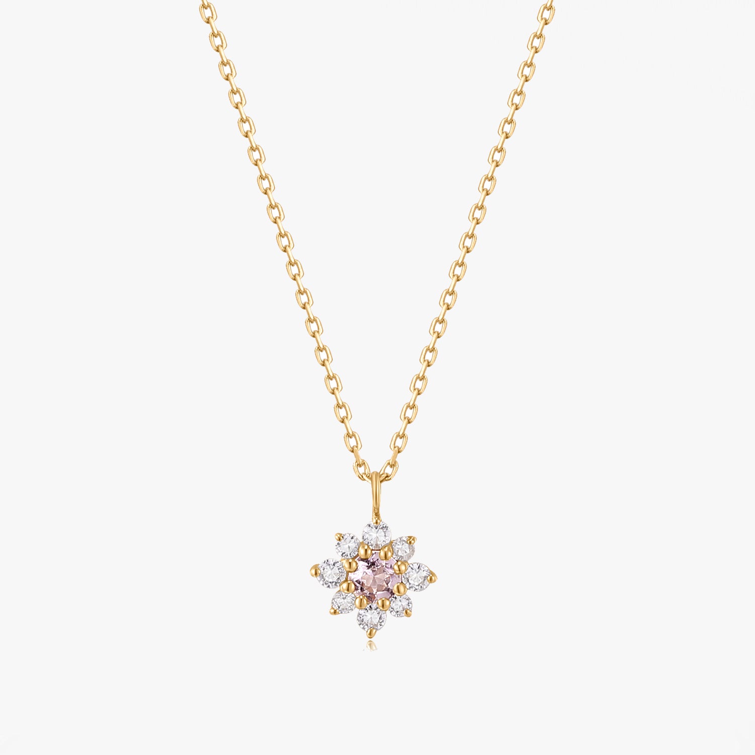Colier din aur galben Flora - Safir alb, Morganit roz