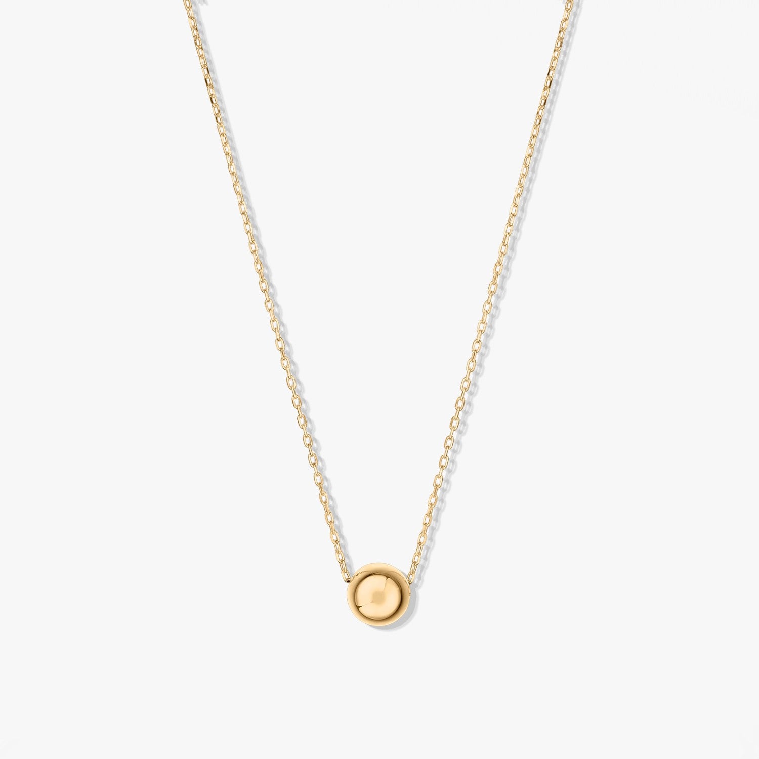 Sphere este întruchiparea minimalismului elegant. Conceput din aur galben de 14k, colierul se distinge printr-un pandantiv sferic delicat, lustruit cu atenție pentru a captiva subtil privirile. Lanțul fin și ușor se așază confortabil la baza gâtului, oferindu-i o notă de rafinament fiecărei ținute, fie că este purtat singur sau în combinație cu alte coliere.