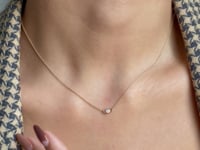Colier din aur Solo - Diamant - un mic diamant solo aflat pe un lănțișor din Aur Galben 14K este piesa esențială din colecția ta. Înălțimea diamantului este de 3 mm, iar lungimea colierului este de 40 cm, cu posibilitatea de extindere până la 45 cm. Claritate diamant D-G/VVS-VS, 0.06 ct.
