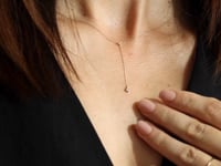 Zirconiu este un colier elegant din aur galben de 14k, care combină rafinamentul minimalist cu strălucirea subtilă a pietrelor. Acest colier în formă de Y se remarcă prin cele două setări delicate de diamant, plasate strategic pentru un efect vizual deosebit. Cu un lanț fin ce măsoară între 42 și 44 cm, colierul se așază ușor pe decolteu, oferind un aspect sofisticat și versatil.
