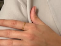 Band este un inel din argint 925 placat cu aur galben de 2 microni, cu un design modern și minimalist, evidențiat de un model răsucit de frânghie. Această piesă subțire și elegantă este concepută pentru a adăuga un plus de rafinament oricărei ținute, fiind ideală pentru purtarea zilnică.