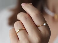 Dots este un inel minimalist, realizat din argint 925 placat cu aur galben de 2 microni, oferind un plus de strălucire și durabilitate. Designul său distinctiv cu model ondulat și margini rotunjite adaugă un element unic și captivant, perfect pentru un stil rafinat, dar discret. Cu o lățime standard de 2.5 mm și o greutate de doar 1.4g, acest inel se așază confortabil pe deget, fiind ușor și plăcut de purtat zilnic. Fie că îl asociezi cu alte bijuterii sau îl porți singur, Dots devine rapid o piesă esențială în colecția ta, oferindu-ți eleganță fără efort.