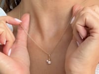 Lora este un pandantiv ce îmbină eleganța aurului galben de 14k cu frumusețea clasică a perlelor naturale. Designul său simplu, dar sofisticat, include o bailă din aur și un ansamblu de trei elemente sferice: două perle de dimensiuni diferite și o bilă din aur, creând un echilibru perfect între rafinament și subtilitate.