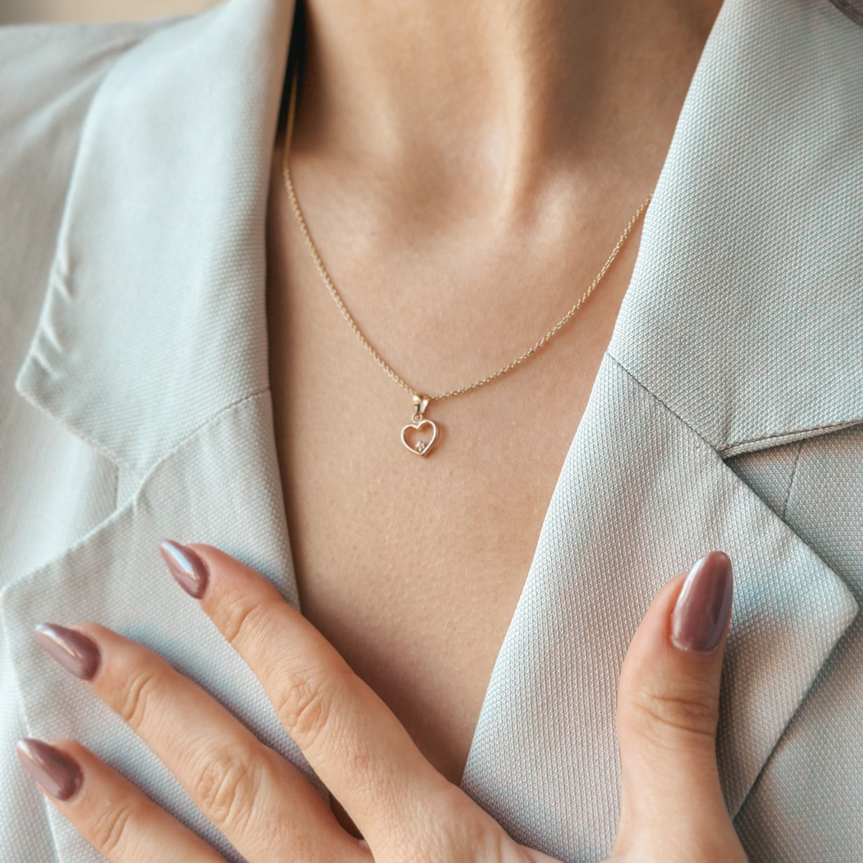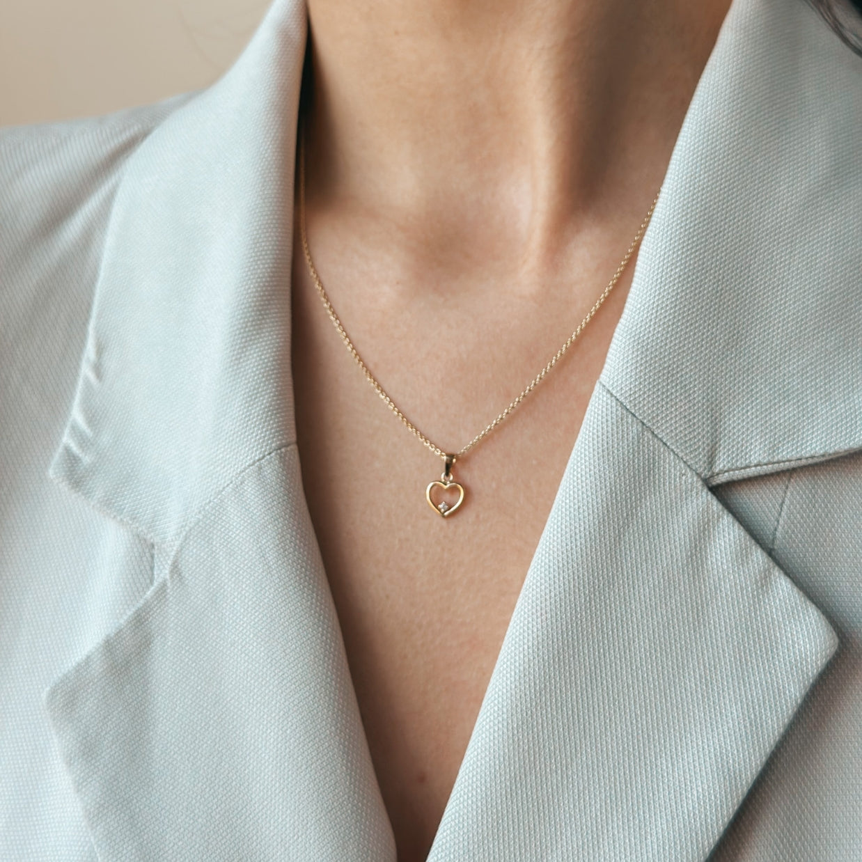 Acest pandantiv fermecător din aur galben de 14K, în formă de inimă, este decorat cu un zirconiu strălucitor central, simbol al eleganței și rafinamentului. Designul său deschis și minimalist adaugă o notă de delicatețe oricărei ținute, transformându-l într-un accesoriu perfect atât pentru ocazii speciale, cât și pentru purtarea de zi cu zi. Este cadoul ideal pentru a exprima afecțiunea și grija față de cineva drag.